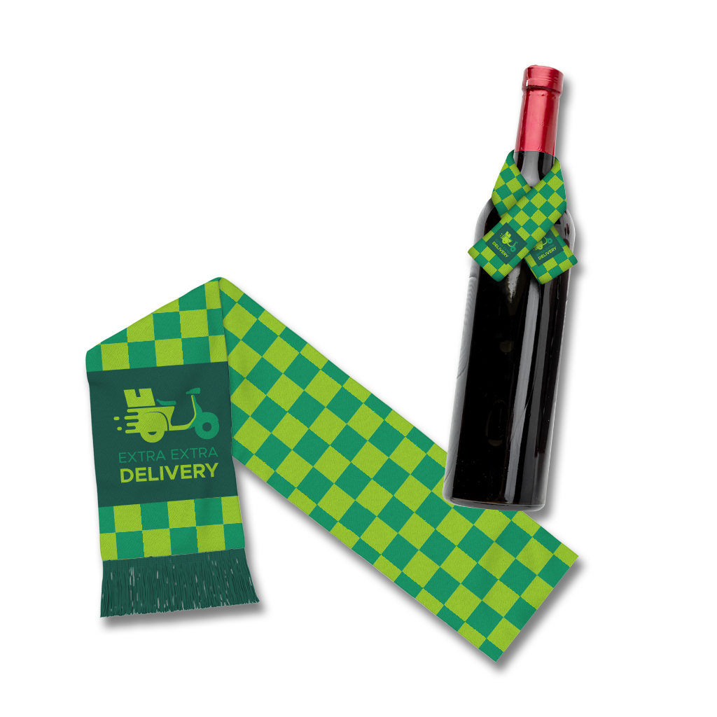 Bottle Scarf: 9" x 1.25" (includes woven label)